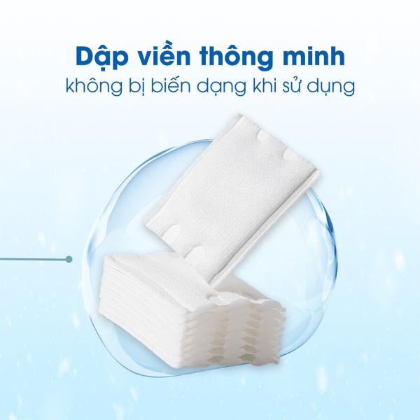 - Thiết Kế Tiện Lợi: Các lớp bông xếp chồng khéo léo giúp thấm hút đều, tiết kiệm tối đa dung dịch tẩy trang.