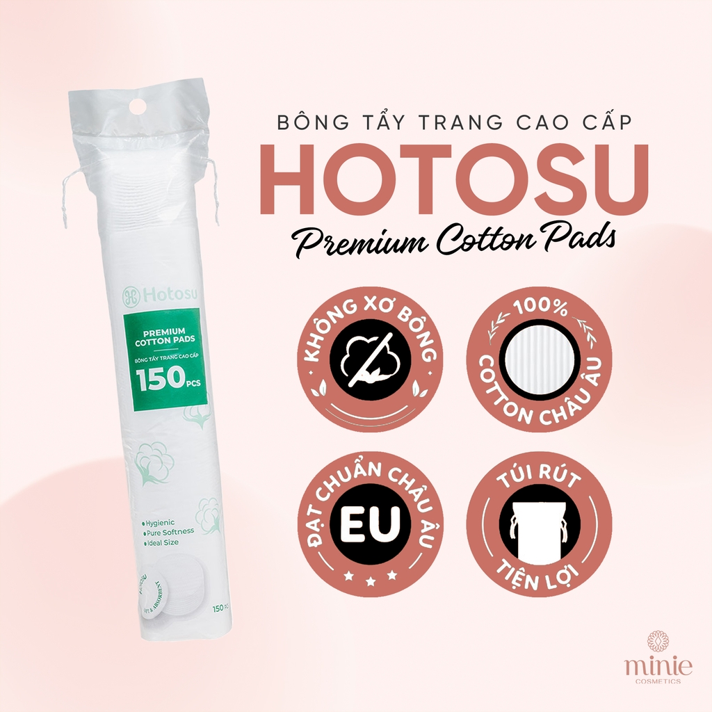 - Bông tẩy trang Hotosu làm từ chất liệu 100% cotton mềm mịn, an toàn với làn da.