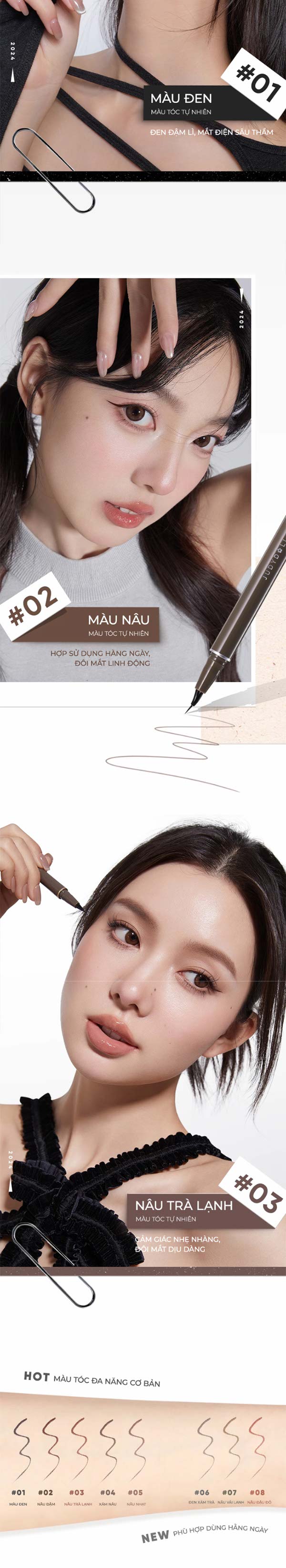 Màu Nâu (#02): Mang lại sự linh hoạt, dễ kết hợp với nhiều phong cách trang điểm khác nhau.