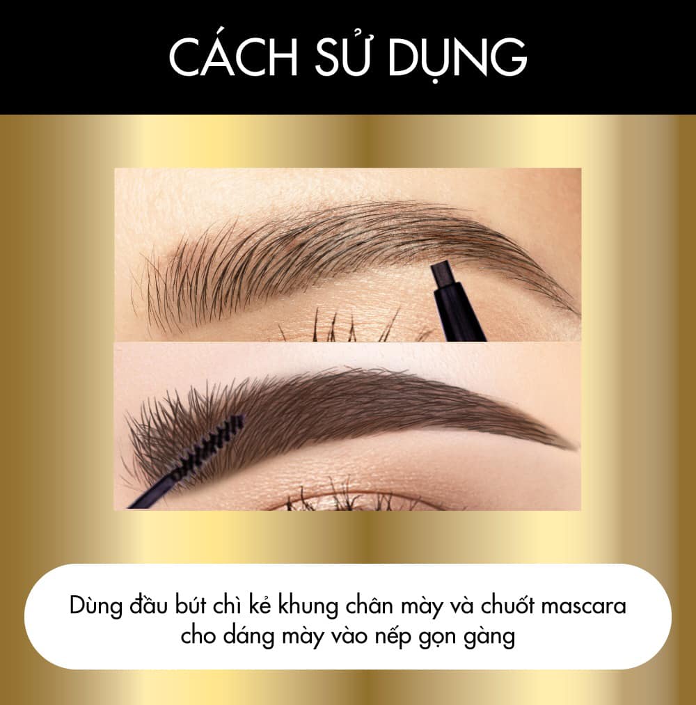 - Chì kẻ mày và mascara 2 trong 1, với một đầu chì siêu mảnh, dễ dàng phẩy từng sợi mày mảnh nhỏ, sắc nét. Và mascara siêu nhỏ giúp chải mày vào nếp gọn gàng.