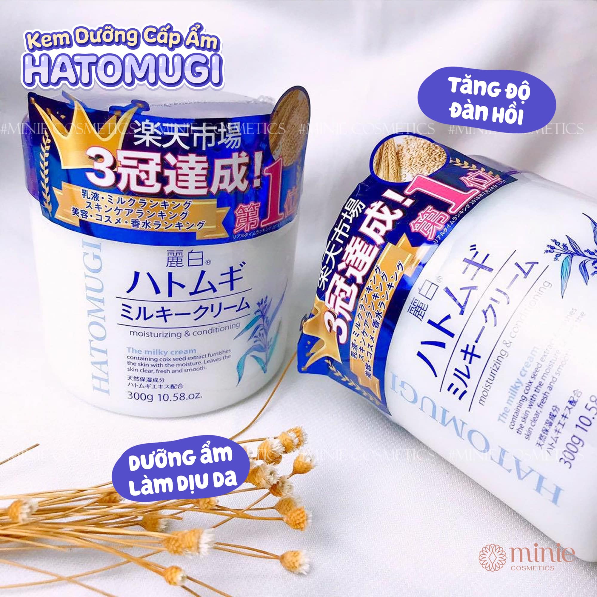 Kem Dưỡng Ẩm, Làm Sáng Da Chiết Xuất Hạt Ý Dĩ Hatomugi Moisturizing & Conditioning The Milky Cream là kem dưỡng thuộc thương hiệu Hatomugi với thành phần chính chiết xuất hạt ý dĩ, kết hợp với hyaluronic acid giúp tăng cường độ ẩm cho da mềm mại, mịn màng. Đồng thời làm sáng da và giảm thiểu những tác hại từ môi trường khiến da bị lão hóa.