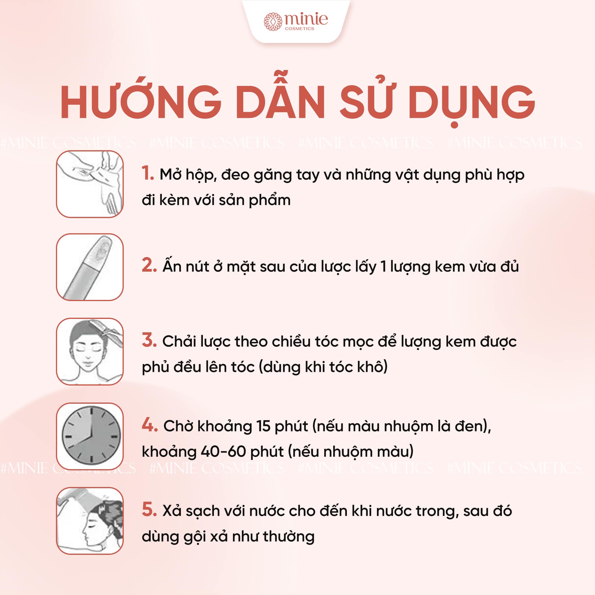 - Không cần trộn thủ công, phủ màu chỉ bằng 1 nút ấn với tỷ lệ chuẩn, cho tóc lên màu đẹp nhất