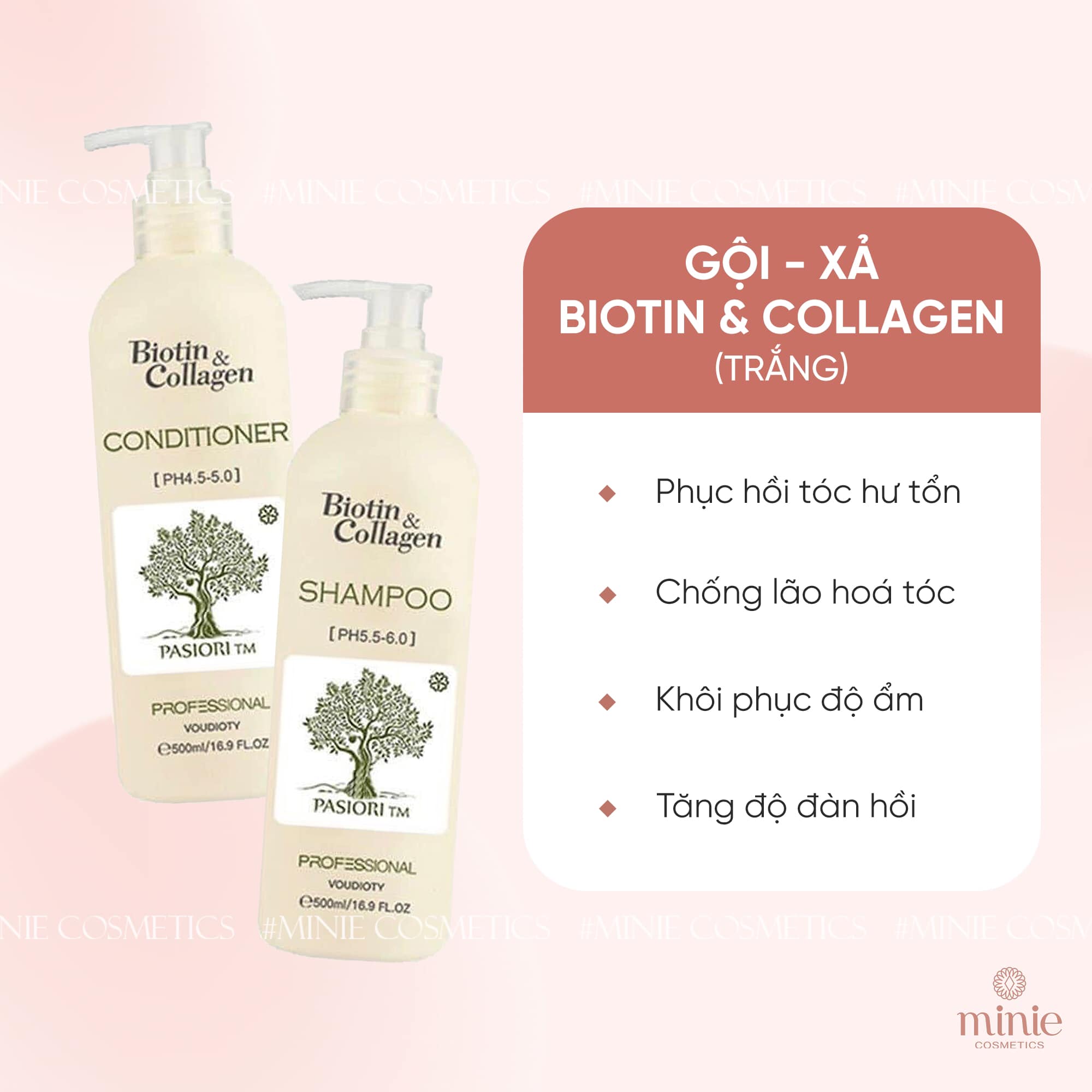Combo dầu Gội Xả Biotin giúp phục hồi tóc và chống rụng tóc kích thích mọc tóc cho mái tóc dày mượt ấn tượng. Với công thức kết hợp tuyệt vời giữa Biotin & Collagen và chứa nhiều dưỡng chất ProVitamin B7 và Biotin giúp thấm sâu vào nuôi dưỡng và phục hồi tóc, đặc biệt phù hợp với tóc khô xơ, hư tổn.