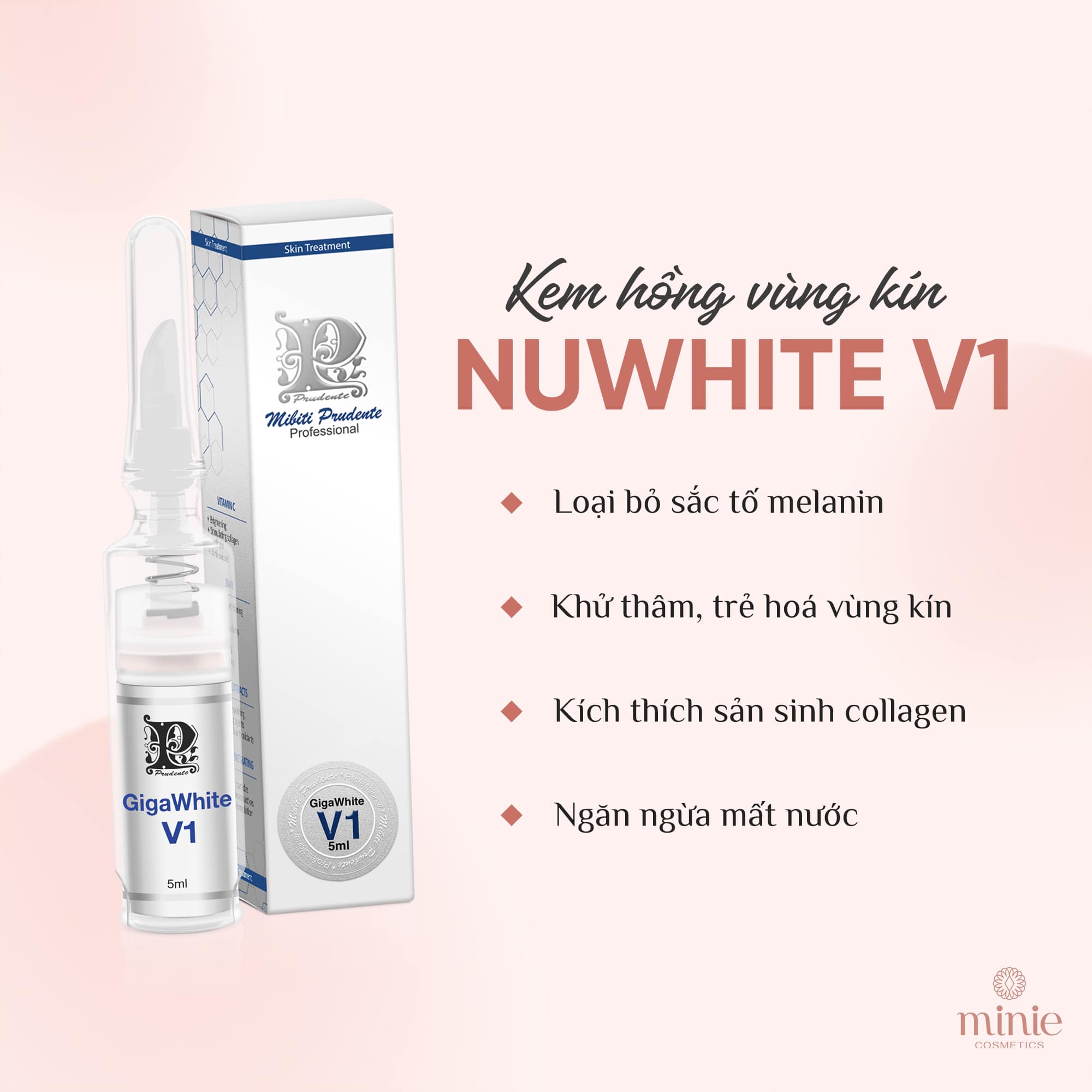 NuWhite V1 là dòng kem làm hồng vùng kín được kết hợp giữa thành phần lành tính và khả năng loại bỏ các sắc tố thâm sạm ở vùng da nhạy cảm của chị em. Ngoài khả năng làm trẻ hóa, sản phẩm còn thúc đẩy quá trình tái tạo, và tăng cường quá trình tuần hoàn máu, mang lại màu sắc hồng hào tự nhiên, giúp chị em lấy lại được vẻ tự tin và quyến rũ của mình.