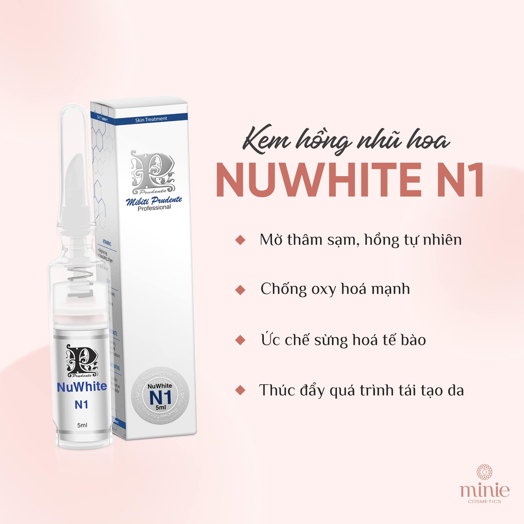 Kem làm hồng nhũ hoa NuWhite N1 là một sản phẩm “cứu cánh” cho rất nhiều chị em đến từ thương hiệu NuWhite Mibiti Prudente USA. Sản phẩm được sản xuất từ Mỹ hỗ trợ ngăn chặn sắc tố sạm, tăng độ sáng hồng, làm mịn da. Ngoài ra còn loại bỏ tế bào da chết, tái tạo da mới cũng như kích thích tế bào da tái sinh độ hồng và độ mịn màng. Hỗ trợ vòng một quyến rũ hơn.