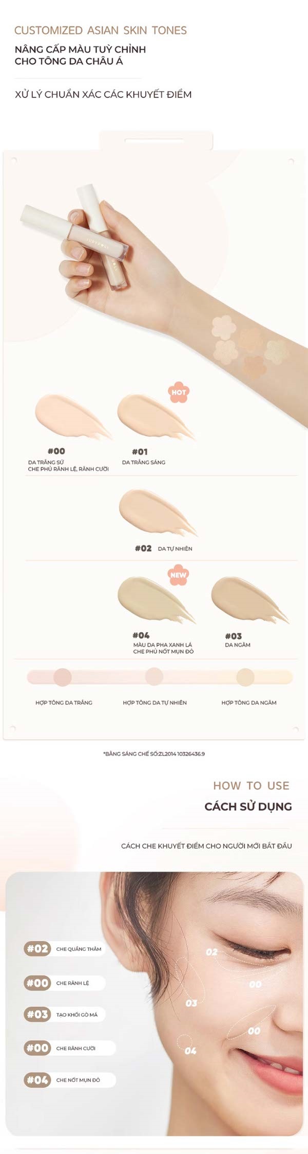 - Lấy một lượng kem vừa đủ chấm lên các vùng da cần che phủ.