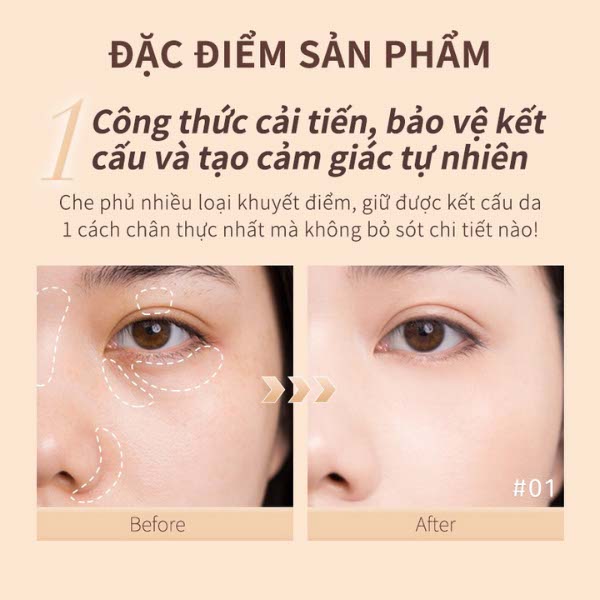 - Độ che phủ cao, không cakey: Nhờ kích thước hạt phấn siêu nhỏ, sản phẩm có khả năng len lỏi vào các lỗ chân lông và rãnh nhăn, che phủ tốt các khuyết điểm mà không gây vón cục hay tạo cảm giác dày cộp.