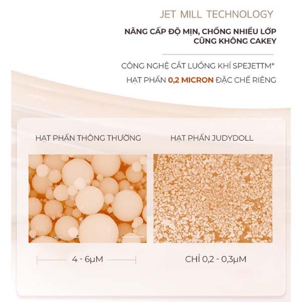 - Hạt phấn siêu mịn: So với các loại phấn thông thường có kích thước hạt từ 4-6 micron, hạt phấn của sản phẩm này nhỏ hơn rất nhiều. Điều này giúp cho lớp nền mịn màng, tự nhiên hơn và không gây cảm giác nặng mặt.