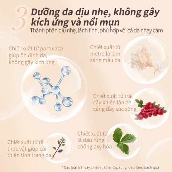 - Không gây kích ứng, phù hợp với da nhạy cảm: Thành phần lành tính, không chứa các chất gây hại, an toàn cho làn da.