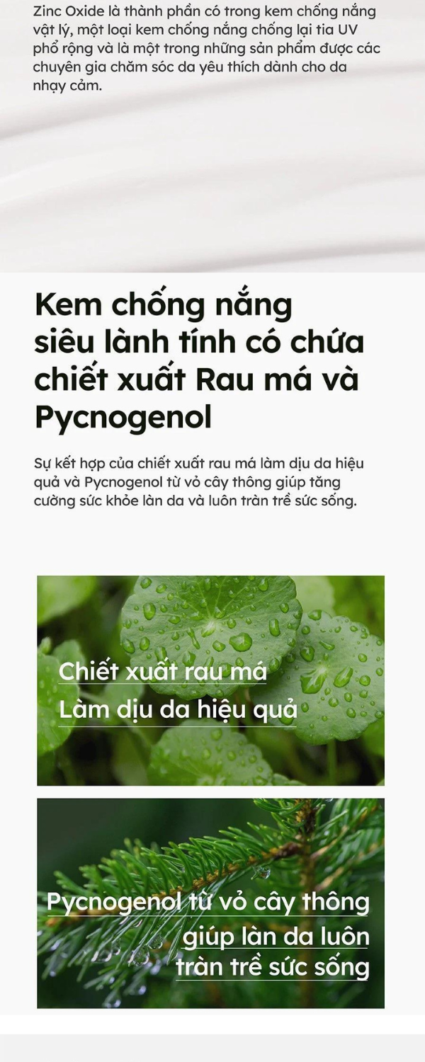 Là kem chống nắng dưỡng ẩm dịu nhẹ, không chỉ mang lại sự bảo vệ tối ưu cho làn da khỏi các tác nhân gây hại từ ánh nắng mặt trời mà còn giữ cho da luôn ẩm mượt, khỏe mạnh và không bị kích ứng. Đây chính là lựa chọn hoàn hảo cho làn da nhạy cảm và dễ bị mụn.