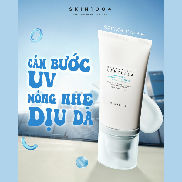 Kem Chống Nắng Phổ Rộng Dưỡng Ẩm SKIN1004 Madagascar Centella Hyalu-Cica Water-Fit Sun Serum SPF50+ PA++++ 50ml là sản phẩm chống nắng đột phá, kết hợp giữa việc bảo vệ da khỏi tia UV và chăm sóc da toàn diện. Với công thức siêu nhẹ và không gây nhờn rít, sản phẩm mang đến làn da mịn màng và ẩm mượt suốt cả ngày.