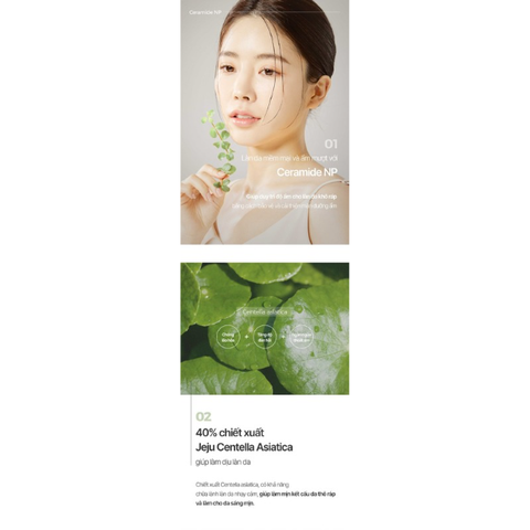 Centella Asiatica Extract (40,8502 ppm), Water, Glycerin, Dipropylene Glycol, Polyglyceryl-3 Methylglucose Distearate, Cetearyl Alcohol, Butylene Glycol, 1,2-Hexanediol, Caprylic/Capric Triglyceride, Cetyl Ethylhexanoate, Butyrospermum Parkii (Shea) Butter, Stearic Acid, Citrus Unshiu Peel Extract, Glycol Stearate SE, Disodium EDTA, Dipotassium Glycyrrhizate, Illicium Verum (Anise) Fruit Extract, Madecassoside, Madecassic Acid, Biosaccharide Gum-1, Betaine, Benzyl Glycol, Crataegus Oxyacantha Extract, Ceramide NP (0.05 ppm), Sodium Acetylated Hyaluronate, Sodium Hyaluronate, Sodium Hyaluronate Crosspolymer, Squalane, Asiaticoside, Asiatic Acid, Allantoin, Houttuynia Cordata Extract, Ethylhexylglycerin, Olea Europaea (Olive) Fruit Oil, Panax Ginseng Root Extract, Xanthan Gum, Gelatin, Gelidium Cartilagineum Extract, Carbomer, Tromethamine, Melaleuca Alternifolia (Tea Tree) Leaf Oil, Melaleuca Alternifolia (Tea Tree) Extract, Panthenol, Palmitic Acid, Pentylene Glycol, Propanediol, Phytosterols, Hydrogenated Lecithin, Hydroxypropyltrimonium Hyaluronate, Hydrolyzed Glycosaminoglycans, Hydrolyzed Pea Protein, Hydrolyzed Hyaluronic Acid, Hyaluronic Acid, Simmondsia Chinensis (Jojoba) Seed Oil.
