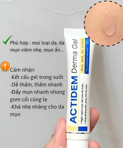 ACTIDEM DERMA GEL là dòng sản phẩm chăm sóc da chuẩn da liễu với công năng chính giúp cải thiện các loại mụn ẩn, mụn viêm,.. đồng thời trải qua các cuộc khảo sát của đội ngũ chuyên gia kiểm chứng chất lượng, hạn chế thâm sau mụn an toàn lành tính thích hợp với mọi loại da.