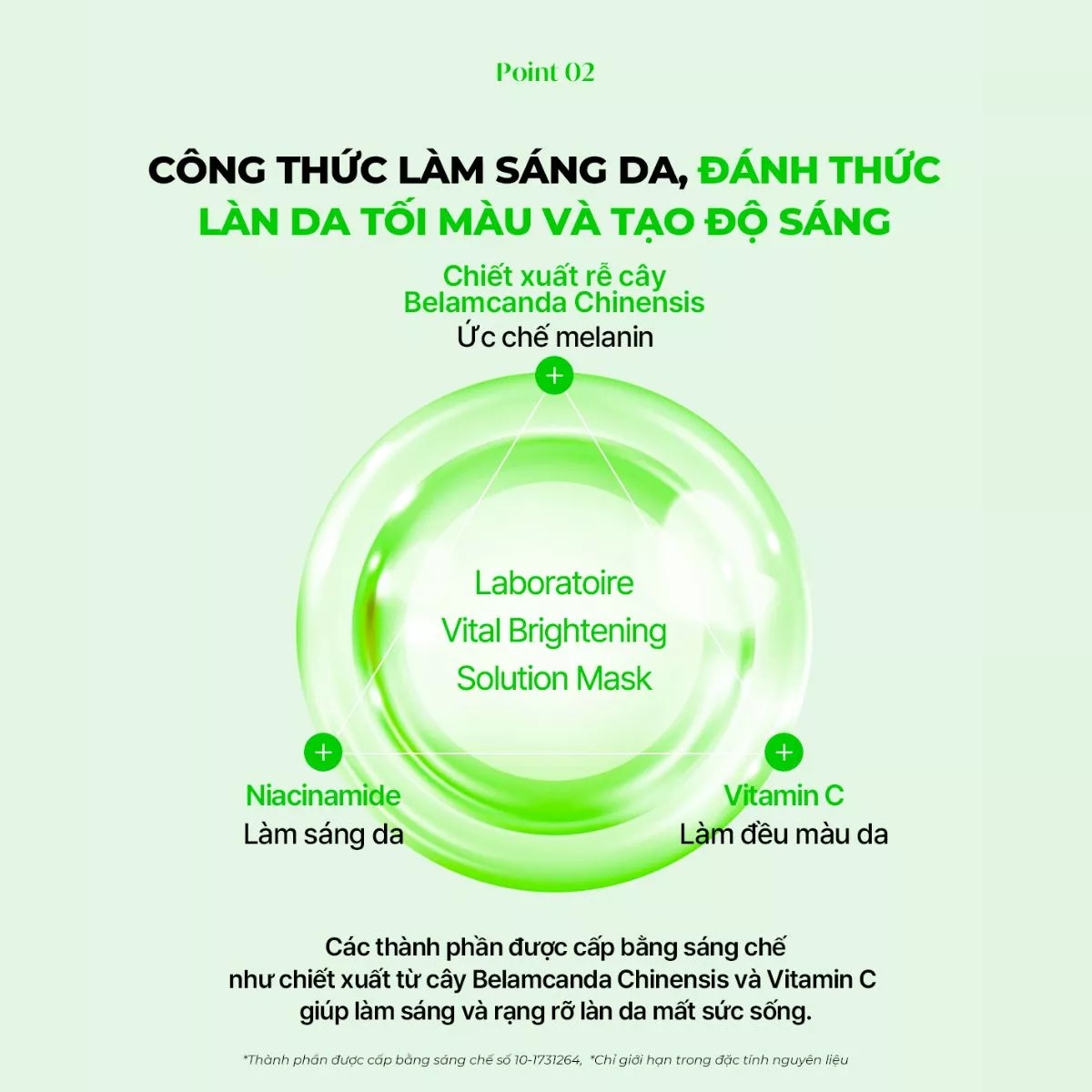 ✦ Kết hợp chiết xuất Xạ can – dưỡng trắng dịu nhẹ, phục hồi da sau tổn thương UV và môi trường.