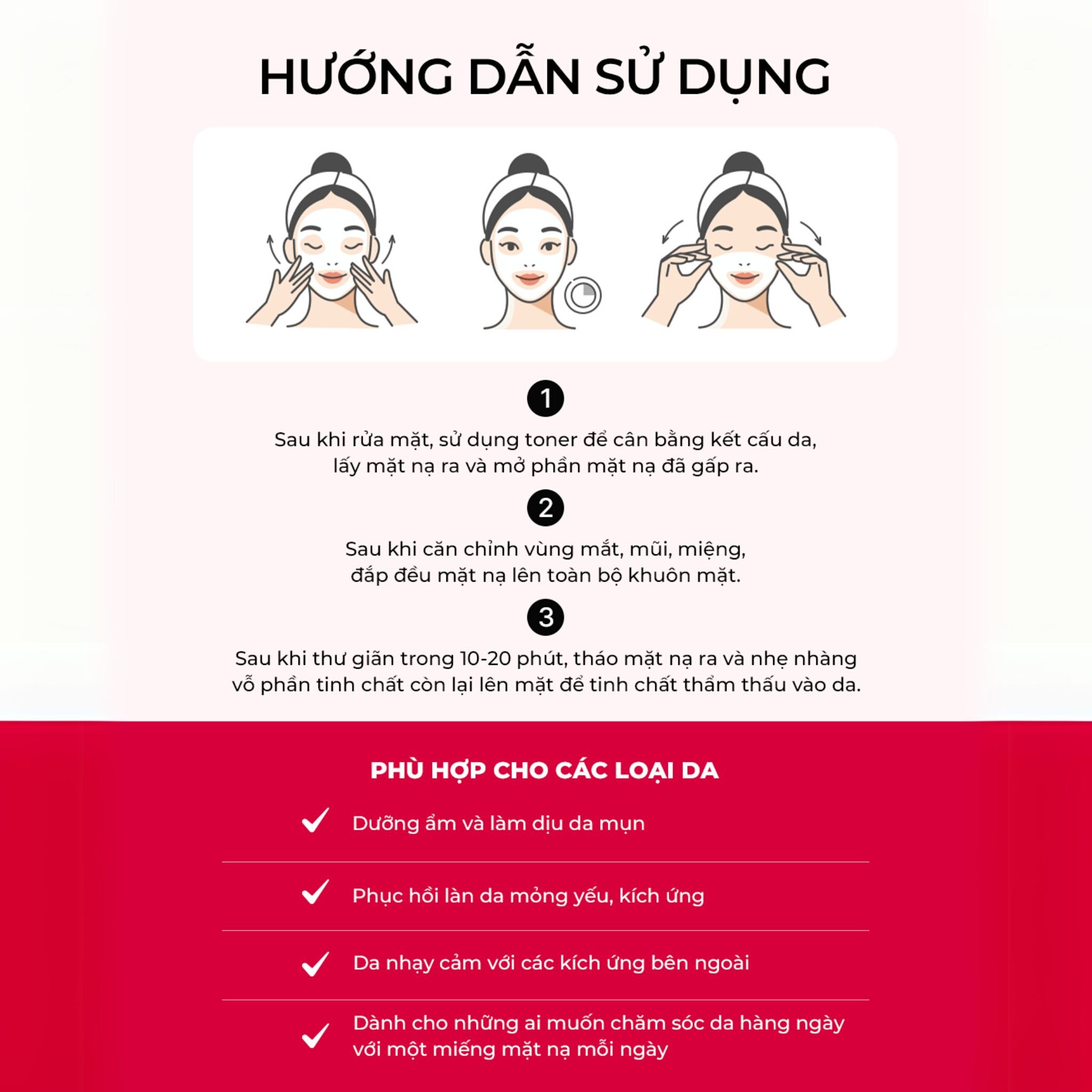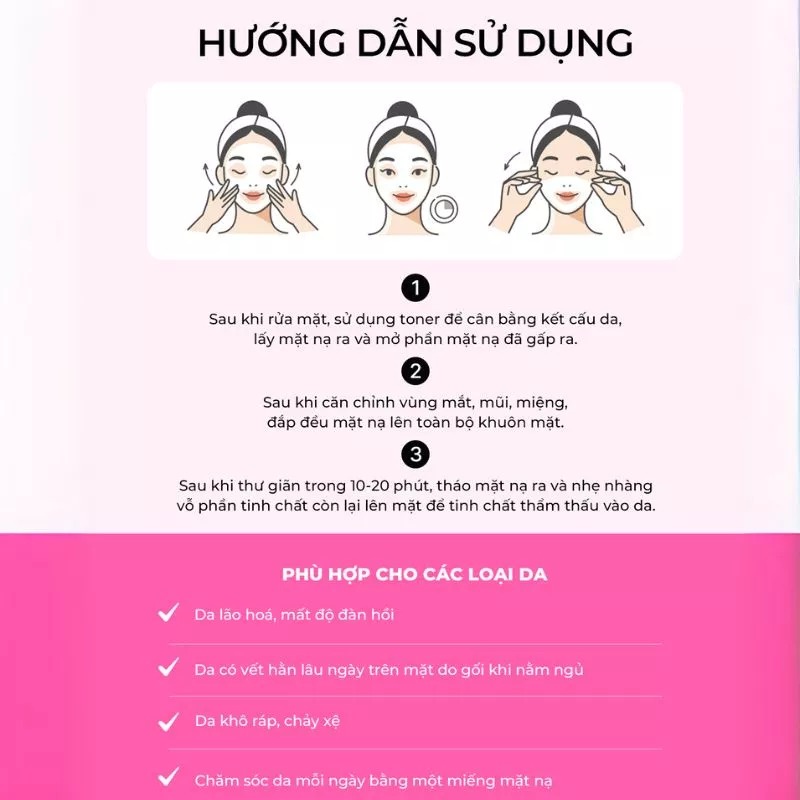 Loại da phù hợp: Mọi loại da, đặc biệt da mụn, da lão hóa, da khô hoặc da nhạy cảm