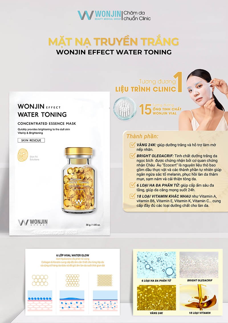 4. Mặt Nạ Wonjin Dưỡng Trắng Effect Water Toning Concentrated Essence Mask 30g