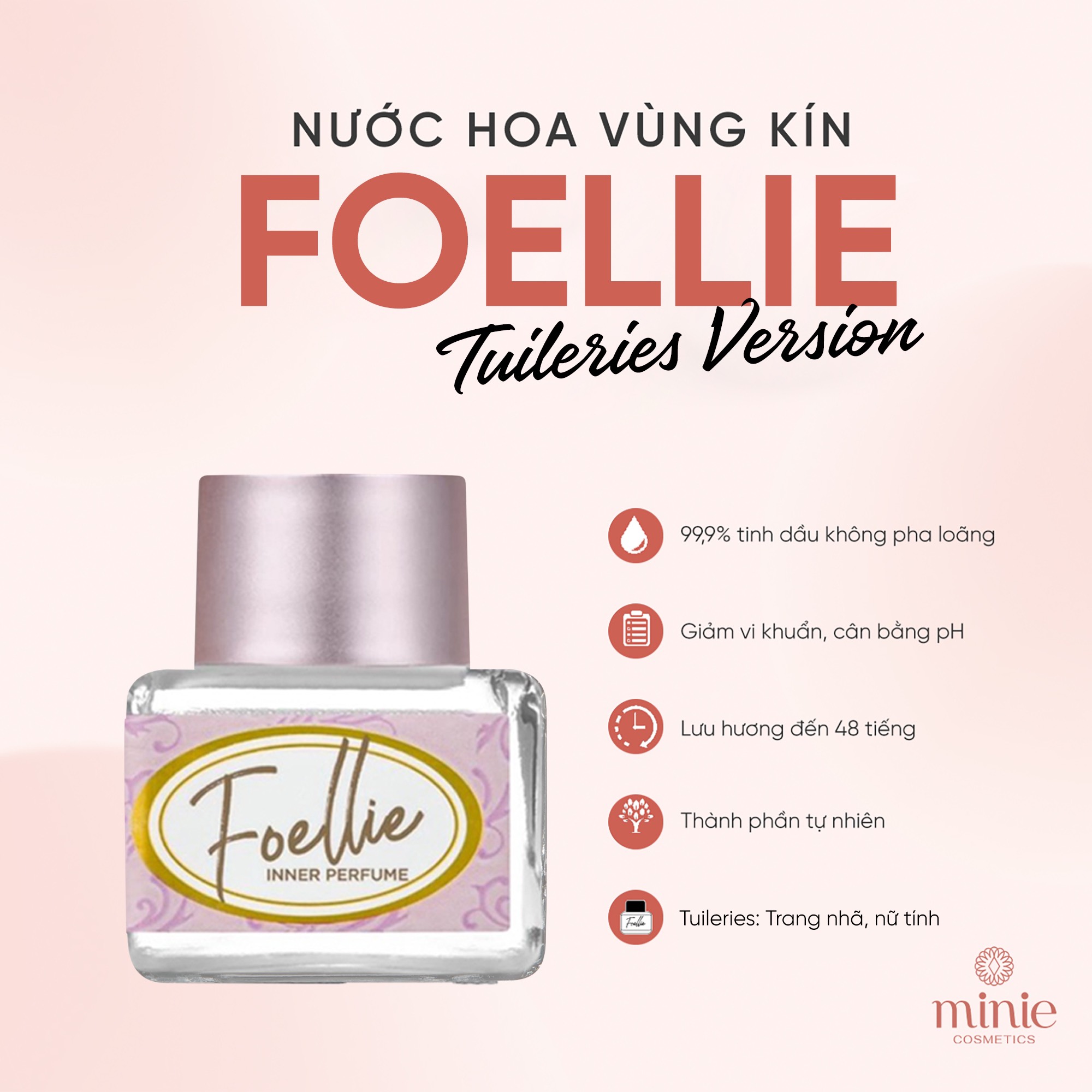 - Với tổ hợp các tinh dầu từ thiên nhiên, Foellie Eau De Inner Perfume không những giúp vùng kín luôn ẩm mịn. Mà còn mang đến mùi hương dịu mát suốt cả ngày.