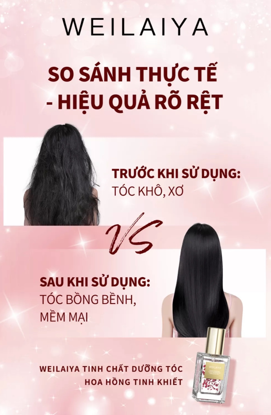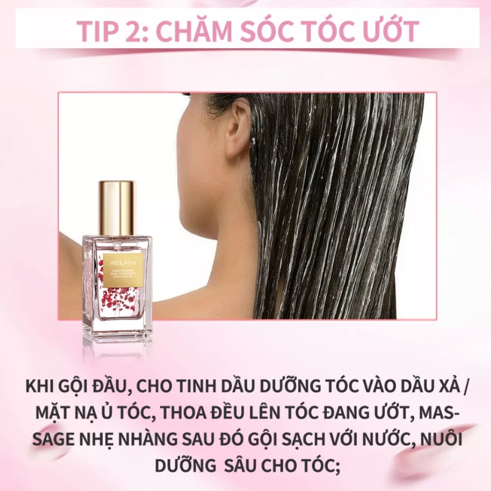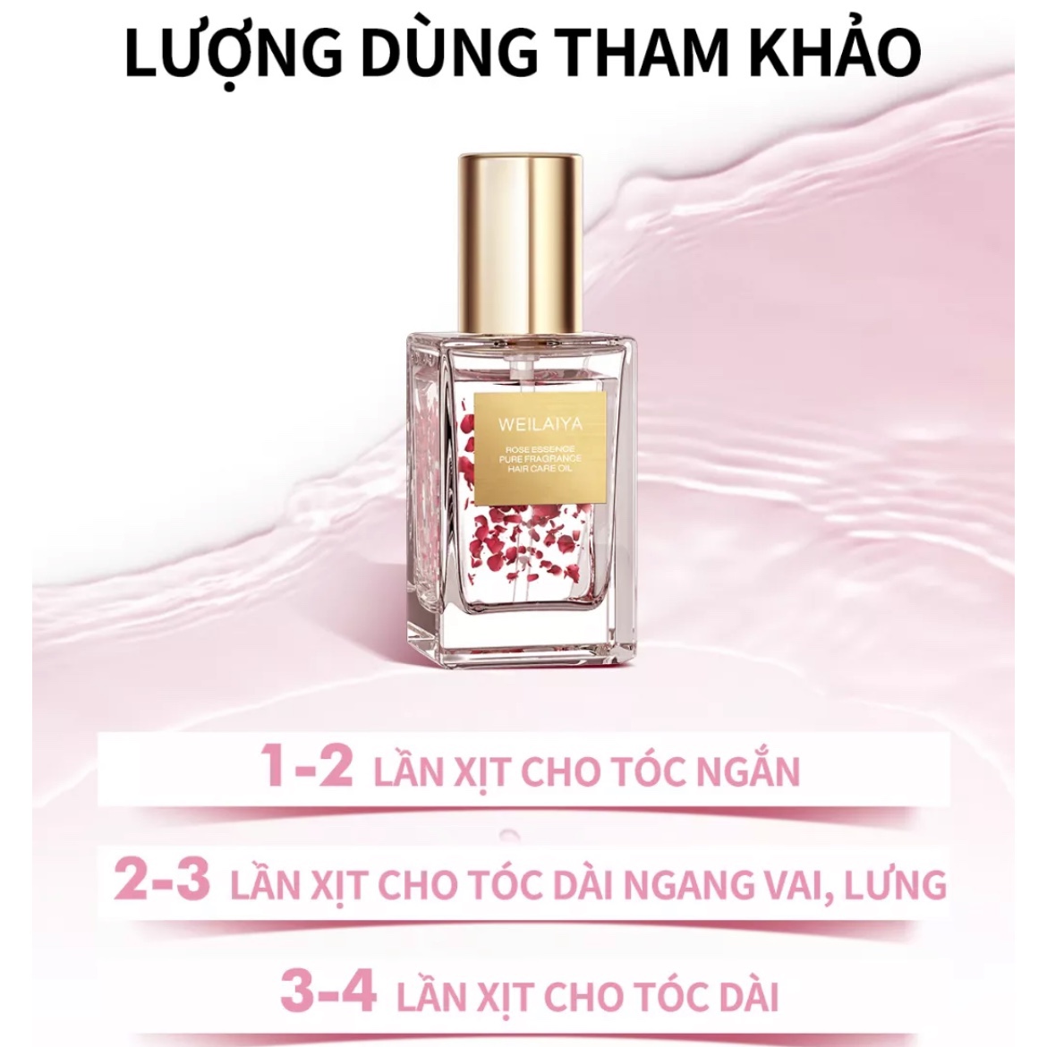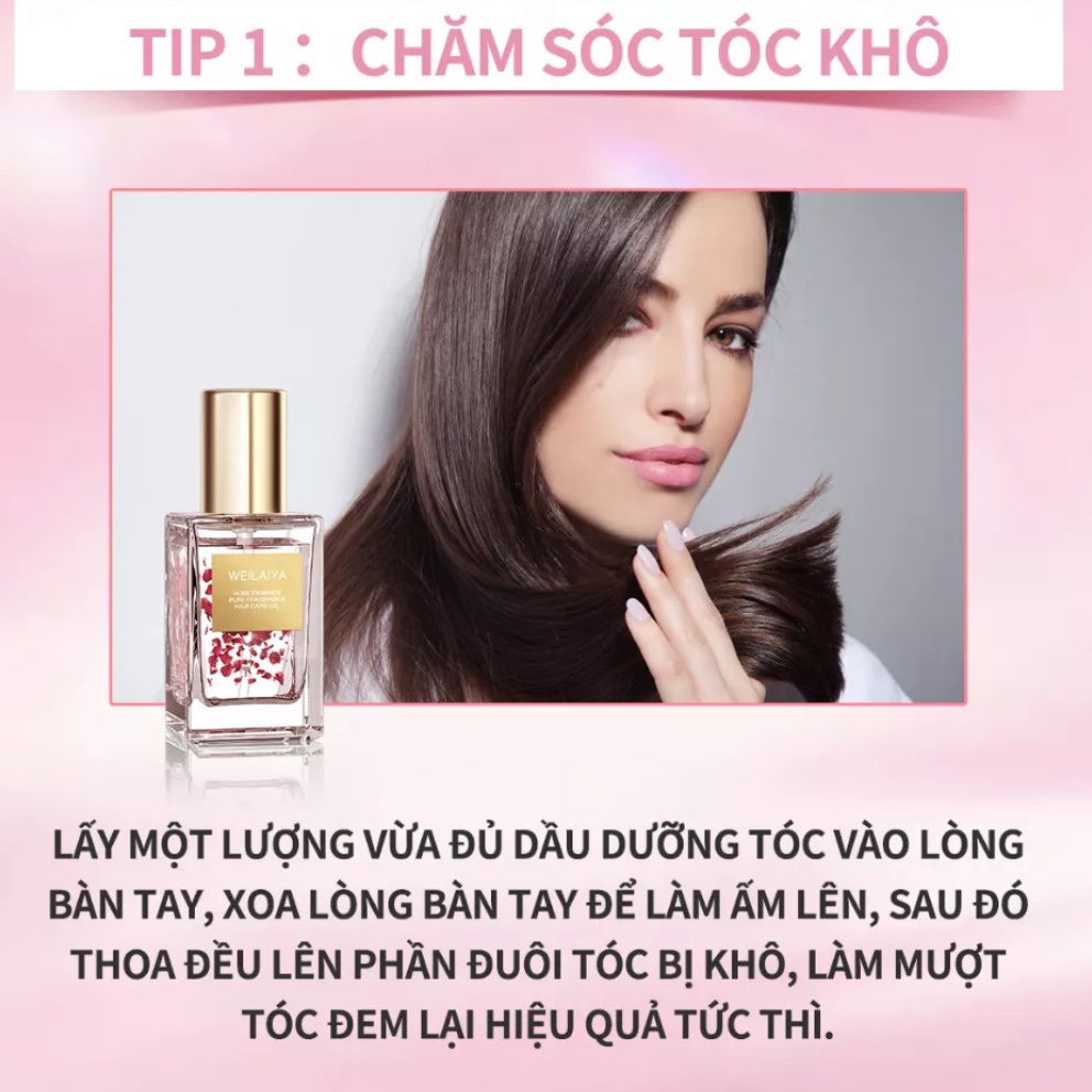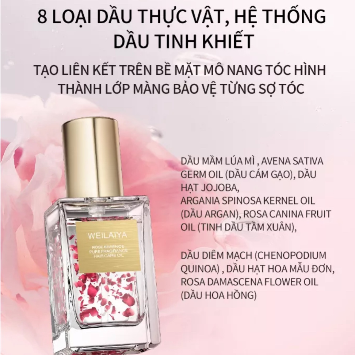 Tinh dầu dưỡng tóc WEILAIYA chiết xuất cánh hoa hồng thiên nhiên giúp cung cấp dưỡng chất, nuôi dưỡng tóc mềm mại, suôn mượt mang lại cho bạn mùi hương và đậm phong cách riêng, với vô vàng sự kết hợp đa sắc hương thú vị để mái tóc của bạn tạo nên phong cách, cá tính riêng của chính mình.