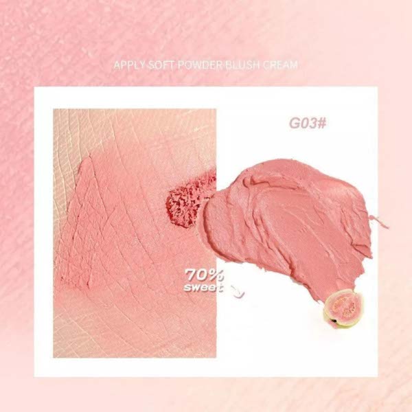 Phấn Má Hồng Dạng Kem GOGO TALES Apply Soft Powder Blush Cream G03 7g chất kem mịn màng, dễ tán đều và bám trên da mà không gây cảm giác nặng nề tạo nên hiệu ứng màu má tự nhiên, mềm mại.
