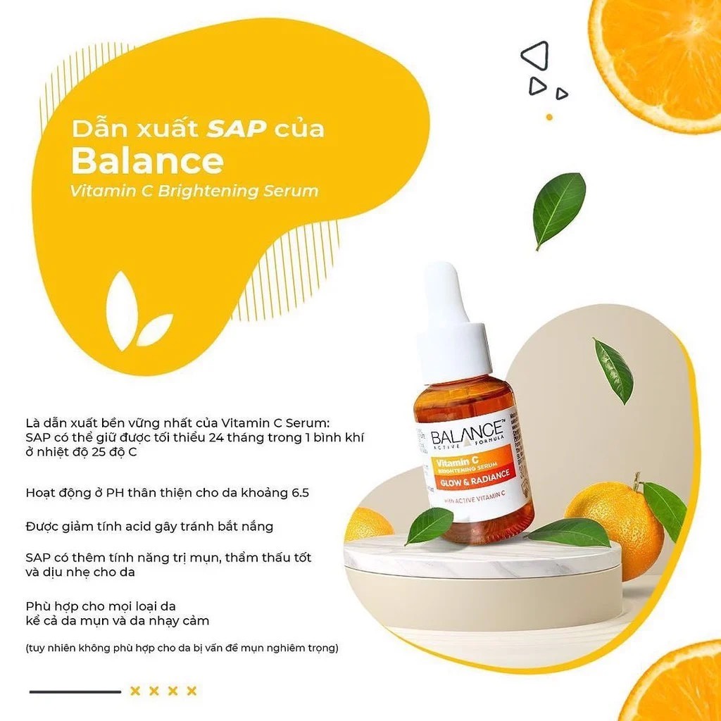 - Serum Balance Active Formula Tinh Chất Dưỡng Trắng Da Trị Thâm Balance Active Formula Vitamin C Brightening Serum với các thành phần dẫn xuất từ vitamin C và vitamin C là giải pháp tối ưu và hiệu quả cho những vết thâm do mụn để lại và làn da xỉn màu.