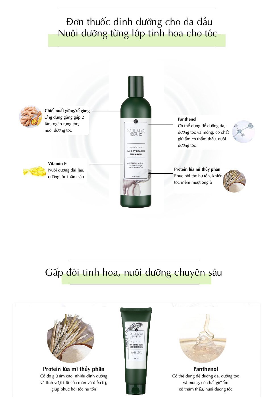 Bộ Dầu Gội Và Xả Gừng Weilaiya Hair Strength Shampoo & Conditioner đến từ thương hiệu Weilaiya có xuất xứ HongKong. Các sản phẩm Weilaiya nói chung và Bộ Dầu Gội Và Xả Gừng Weilaiya Hair Strength Shampoo & Conditioner Ginger nói riêng đều sử dụng nguyên liệu thiên nhiên nhập khẩu từ Đức, dây chuyền sản xuất tiên tiến, hiện đại, quy trình kiểm định nghiêm ngặt về chất lượng, hiệu quả, phù hợp với nhiều độ tuổi sử dụng khác nhau.