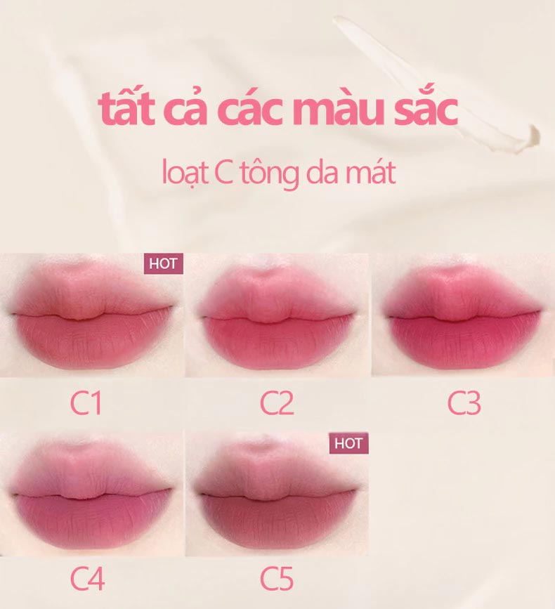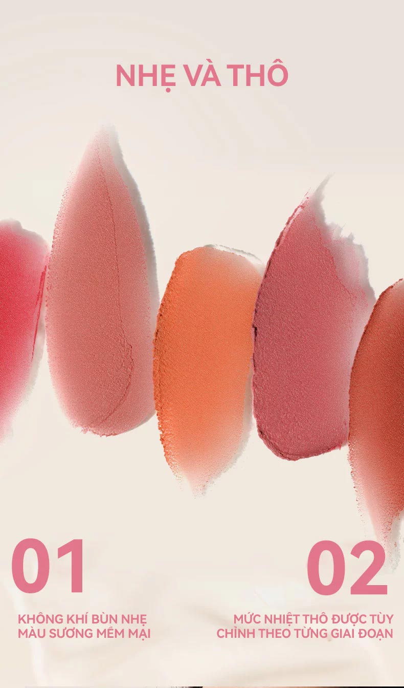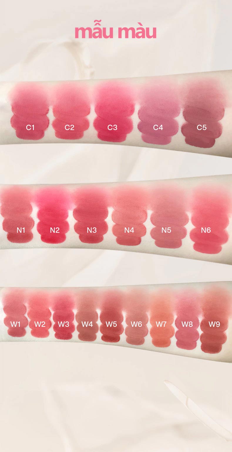 Dòng son Into You Customized Airy Lip Mud là một trong những sản phẩm nổi bật nhất của INTO YOU, được yêu thích bởi kết cấu bùn mềm mịn, khả năng che phủ cao và bảng màu đa dạng phù hợp với nhiều tone da. Đây là dòng son kem bùn sử dụng được cho cả môi và má, mang lại vẻ ngoài rạng rỡ, tự nhiên suốt cả ngày dài.