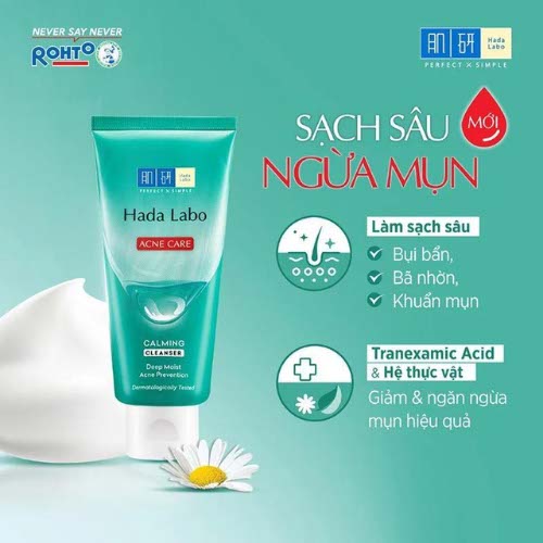 - Nên dùng kết hợp sữa rửa mặt Hada Labo cho da dầu mụn với Dung dịch dưỡng/Kem dưỡng Acne Care Calming để đạt hiệu quả tối ưu.
