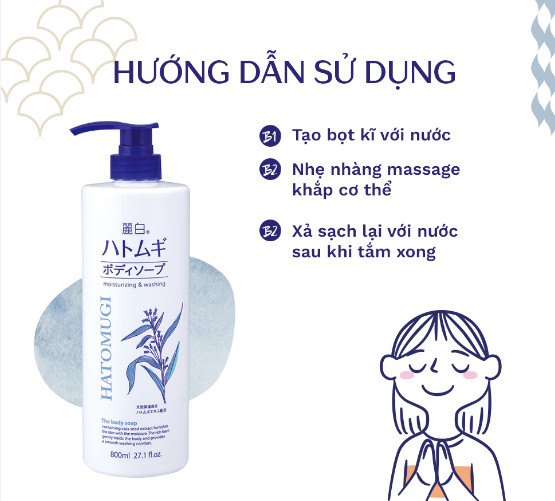 - Sữa Tắm Dưỡng Ẩm, Trắng Da Chiết Xuất Ý Dĩ Nhật Bản Hatomugi Moisturizing & Washing The Body Soap 800ml thường xuyên được các tạp chí đứng đầu tại Nhật Bản bình chọn thuộc top 3 sữa tắm có độ dưỡng ẩm tốt và được khách hàng yêu thích. Không chỉ riêng tại thị trường nội địa Nhật sản phẩm còn dậy sóng tại các nước lận cận và khắp châu Á, trong đó có Việt Nam.