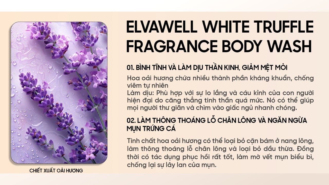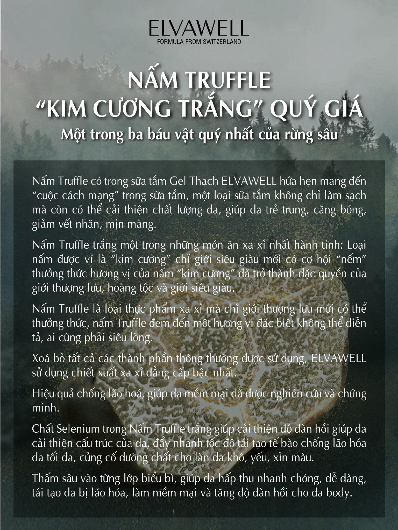 Thành phần và công dụng nổi bật Sữa tắm nước hoa nấm Truffle Elvawell