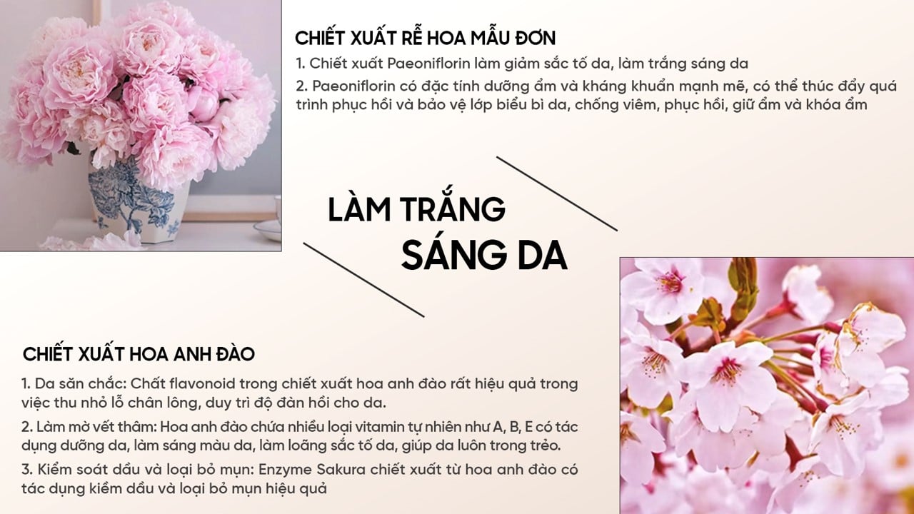 - Thành phần này còn giúp làm sáng da, mang lại làn da rạng rỡ và tươi trẻ.