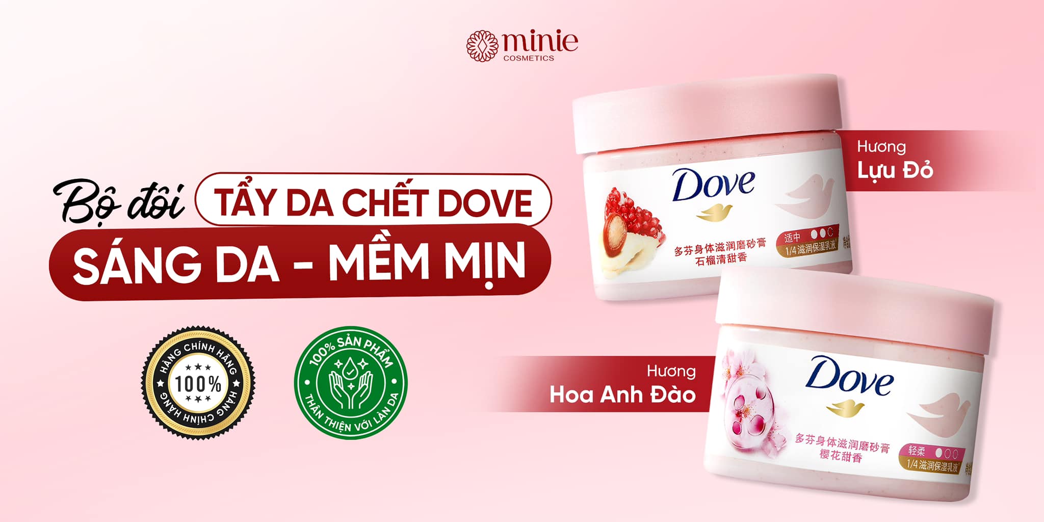 Tẩy Tế Bào Chết DOVE Dưỡng Da Sáng Mịn Da với các vi hạt hạt tẩy tế bào chết nhuyễn mịn không có cạnh sắc, phù hợp làm sạch da chết toàn thân giúp dưỡng ẩm và sáng mịn da, hiện đang có 3 loại sau: