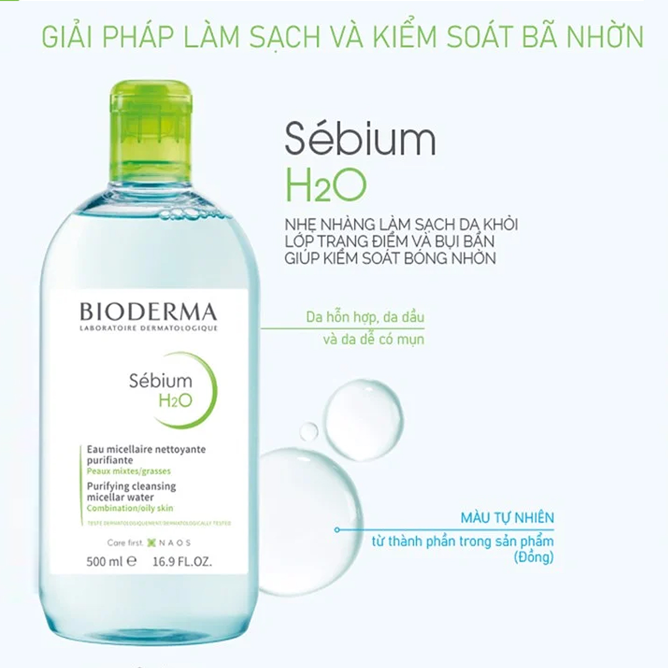 - Nước Tẩy Trang Cho Da Dầu, Da Hỗn Hợp, Da Mụn Bioderma Senbium H2O sử dụng hợp chất độc quyền Fluidactiv® (đã được cấp bằng sáng chế) giúp ngăn ngừa mụn nhờ tác động trực tiếp đến chất lượng bả nhờn, từ đó ngăn ngừa và giảm mụn, giúp bạn duy trì một làn da mịn màng, sáng khỏe.