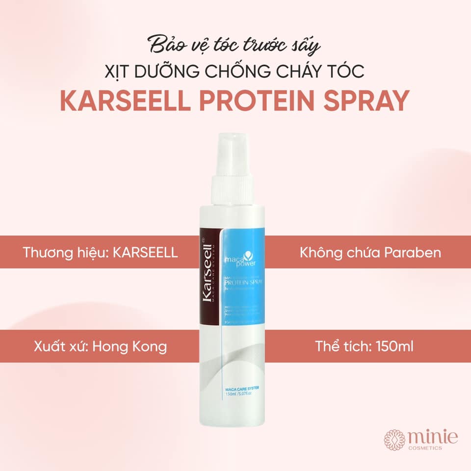 Xịt dưỡng chống nhiệt trước sấy KARSEELL Protein Spray 150ml với dưỡng chất Protein giúp phục hồi cấu trúc tóc. Cung cấp độ ẩm cho tóc, cho tóc khô hư tổn.