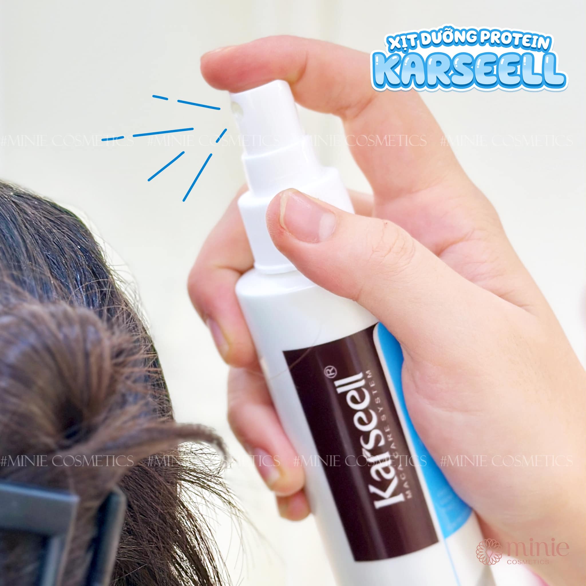 – Xịt dưỡng chống cháy tóc Karseell Protein Spray với dưỡng chất Protein giúp phục hồi cấu trúc tóc, cung cấp độ ẩm cho tóc khô hư tổn. Chống nhiệt chống cháy, trong quá trình duỗi uốn tóc.