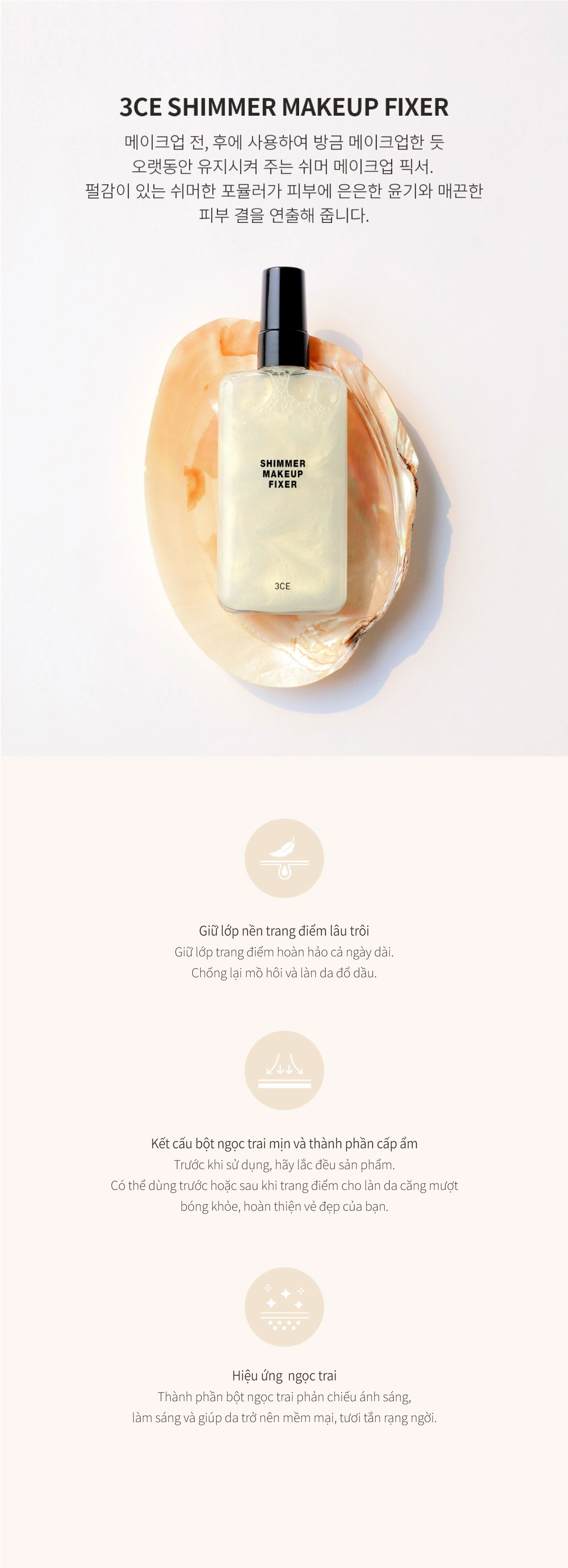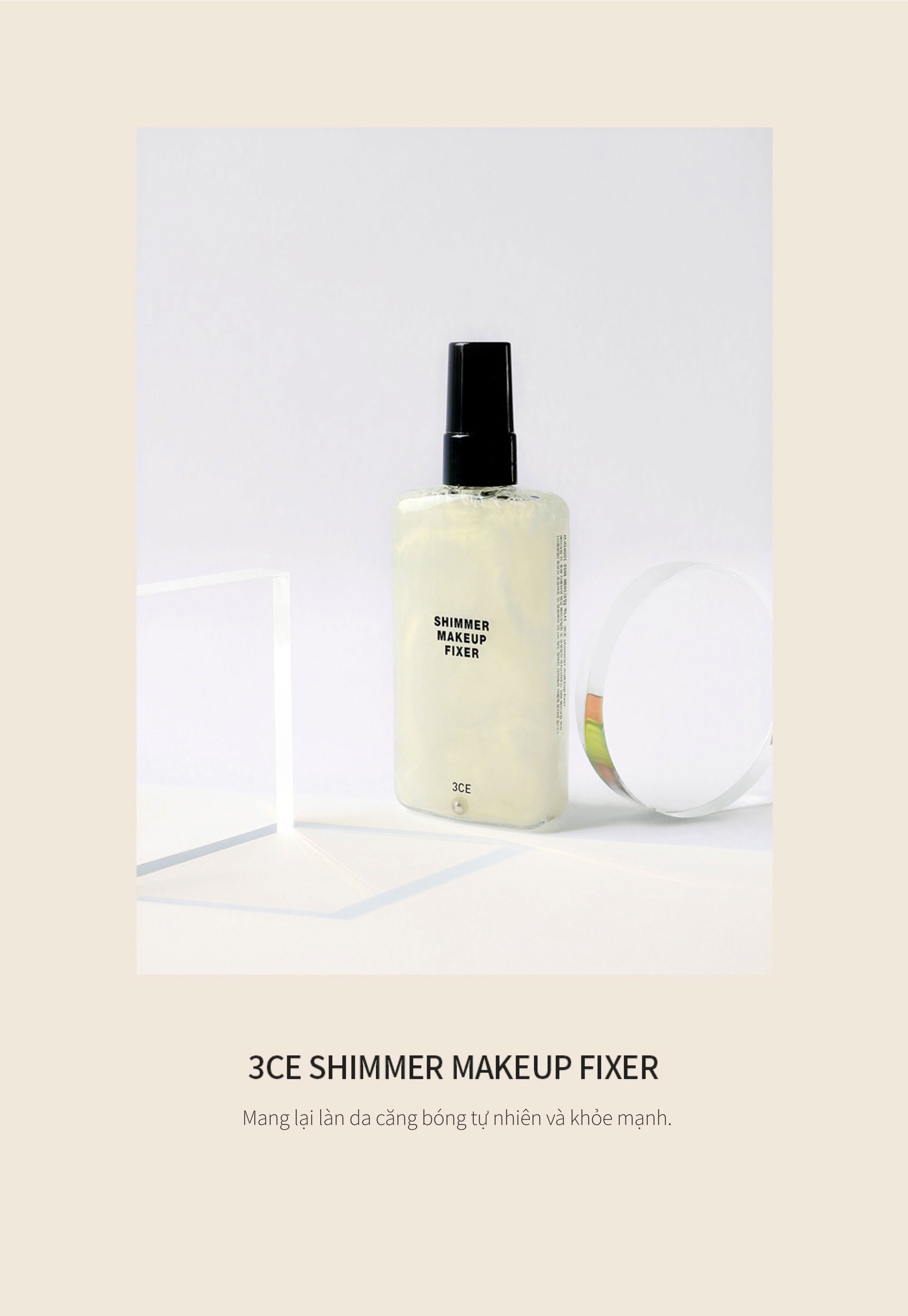 Xịt Khóa Lớp Trang Điểm 3CE Shimmer Makeup Fixer 95ml – Bí Quyết Giữ Lớp Makeup Hoàn Hảo Cả Ngày